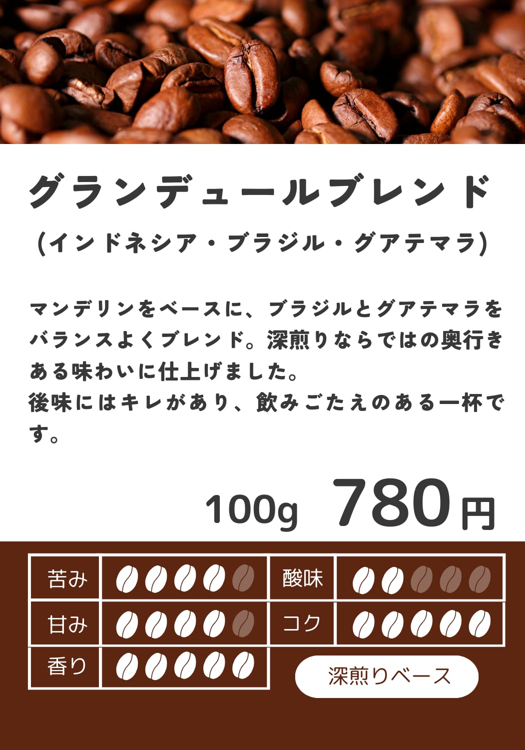 深煎りならではの奥行きある味わいに仕上げました。