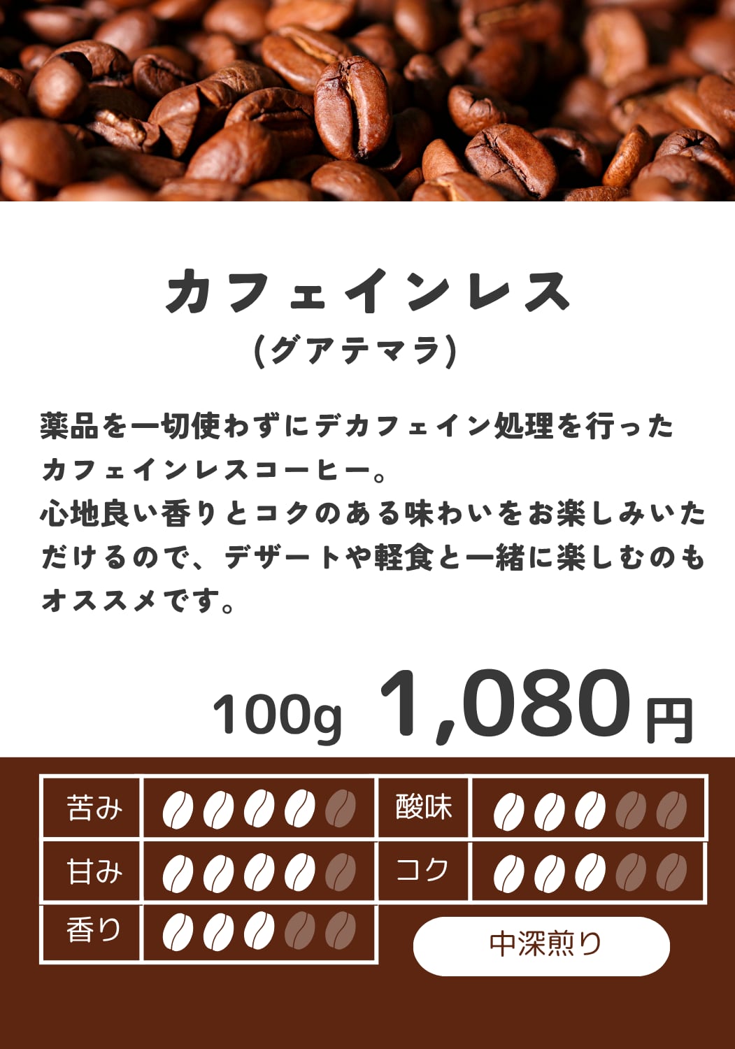 【グアテマラ】カフェインレス / 中深煎り / 100g